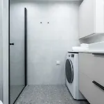 Das Apartment verfügt über eine getrennte Toilette, eine Dusche und eine Waschmaschine, die Ihren Komfort erhöhen. Des Weiterem gibt es einen Haartrockner, Handtücher und Hausschuhe im Badezimmer.